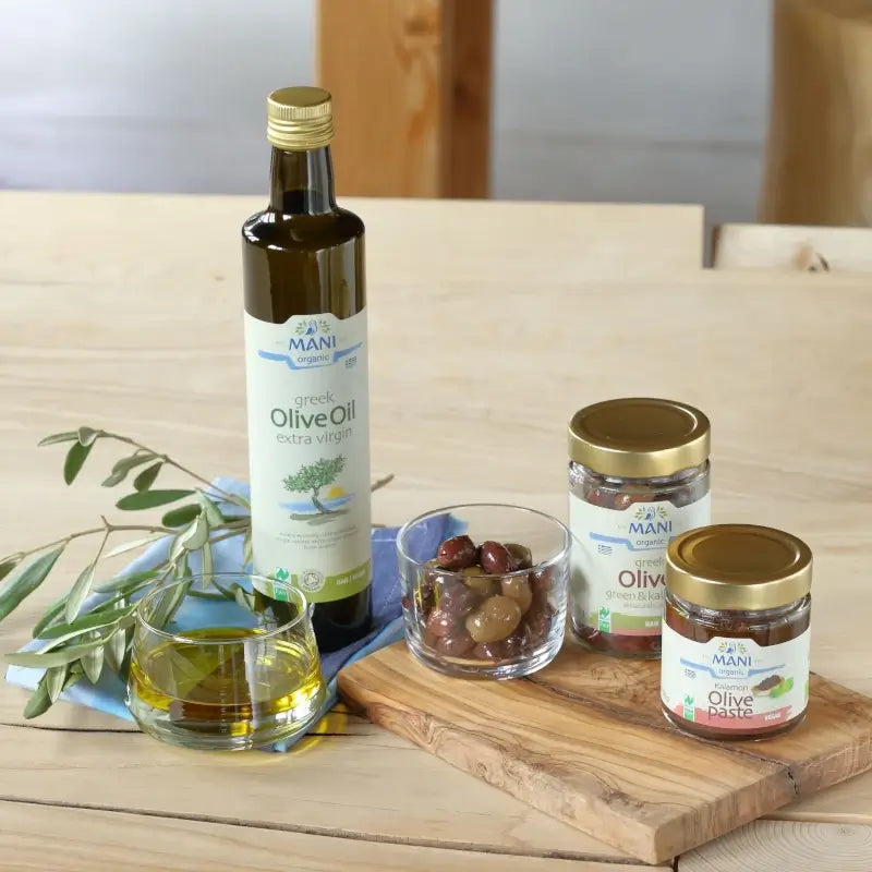 Mani Organic produces award-winning organic Greek olives and olive oil sourced from traditional farms in the Mani region of southern Greece.