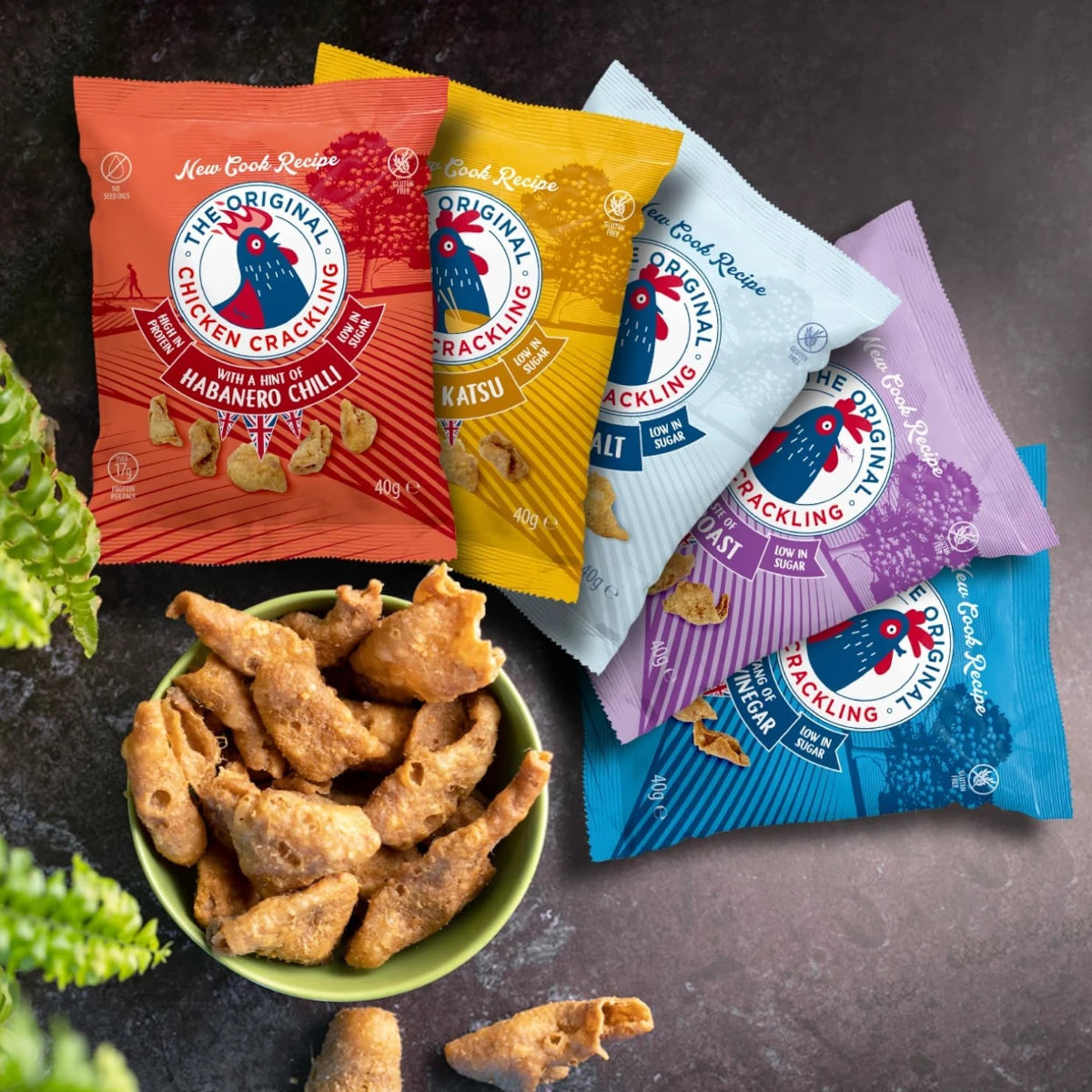 Our unique small-batch cooking process creates a lighter, crispier texture that’s easier to eat than traditional pork scratchings.